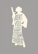 De Star Wars Silhouette Quotes Leia kunstdruk heeft een eenvoudig dessin maar zal zeker de aandacht trekken. Niet alleen de silhouette van Star Wars Leia is erop te zien maar ook de quote 'Aren't you a little short for a StormTrooper' staat erop.