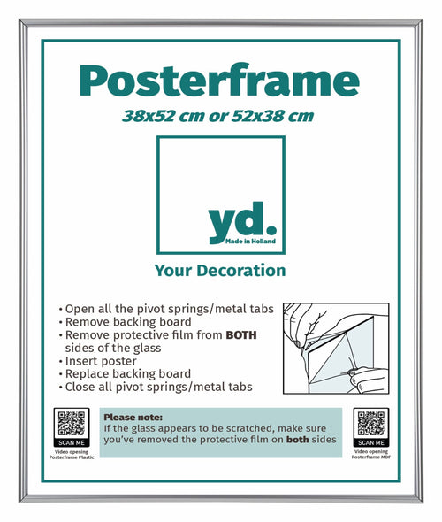 Deze kunststof Posterkader 38x52cm zilver is van goede kwaliteit en zal jouw favoriete poster, foto of een kunstdruk nog meer laten stralen.